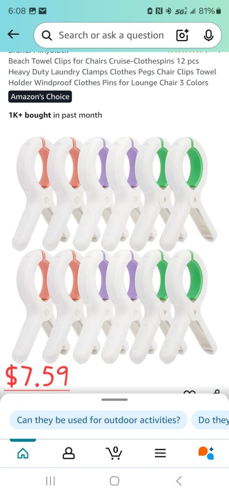 Cruising, and the beach can get windy. Towels slip and blow away. These handy little things ensure your towel stays put. Keeping it out of the sand, and off the deck.